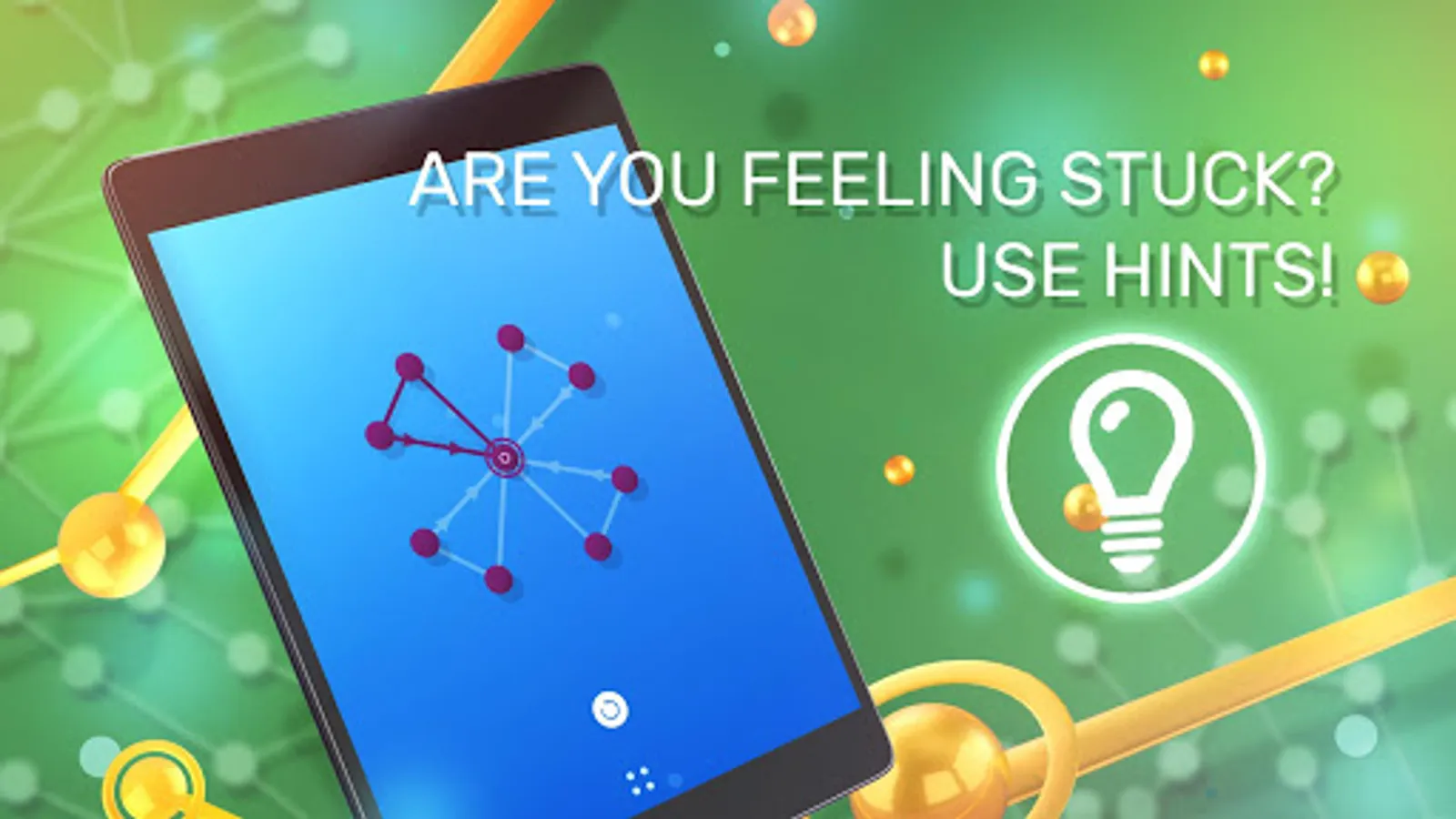 Just like knowledge does not occupy place, ⚯ ONE LINE will also not overload your device memory. This is a battery-friendly game, which means we will not drain your energy either.