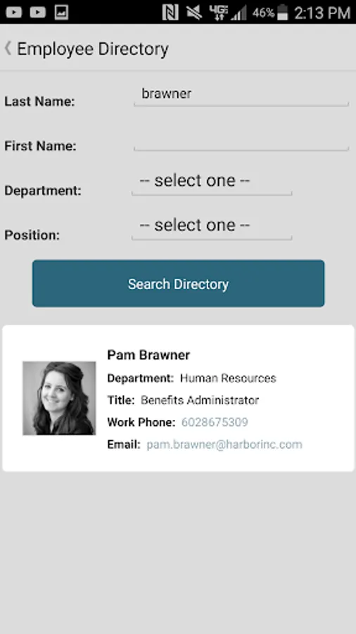 • Employee Self Service - The employee directory offers the convenience of searching for employees by name, department, or position from wherever you are with ease. Phone numbers and emails are linked within the search results to pull up email or call functions on the user’s phone when tapped. The mobile app also makes it easy to view and download your latest paycheck stub details.