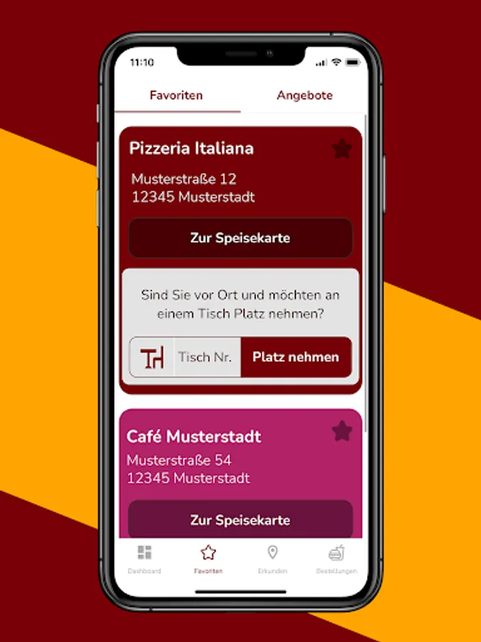 Discover a whole new way to enjoy your restaurant! With our on-site function, you can conveniently take a seat at free tables and order. Don't worry, our app takes existing reservations into account to avoid overlaps. For you, this means: shorter waiting times, increased satisfaction, faster service and an unforgettable experience that you will want to enjoy again and again.