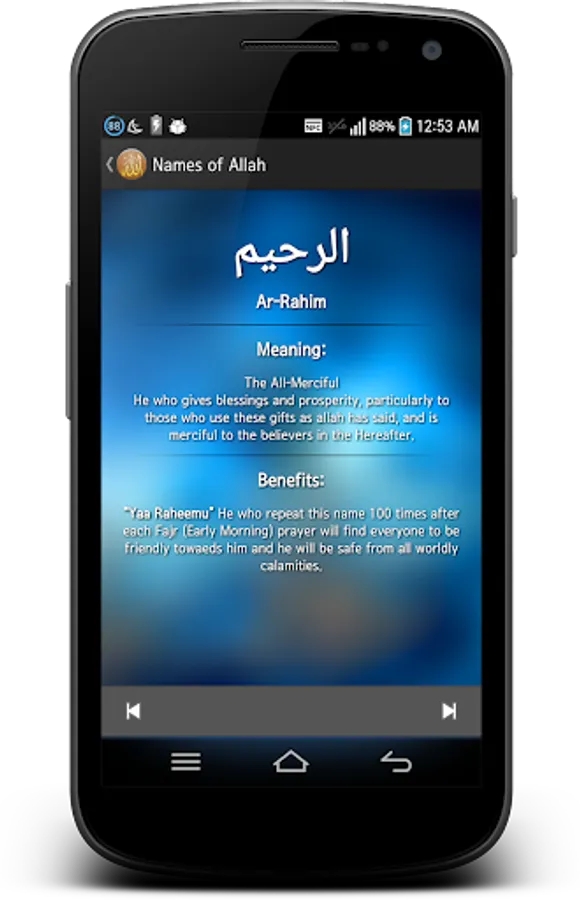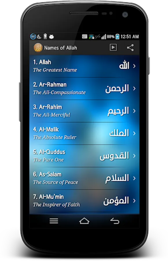 Prophet Muhammad PBUH said: "Verily, there are 99 names for Allah, i.e. hundred excepting one. He who enumerates them would get into Paradise" (Muslim)