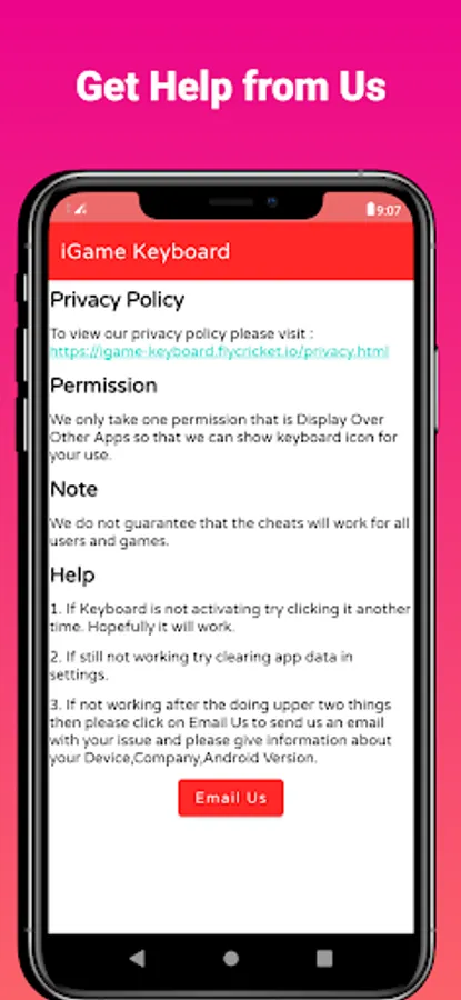 ⦁ Help Corner: iGame Keyboard has help button so that if you have any problem you can get help. You can also contact us if given steps do not work.
