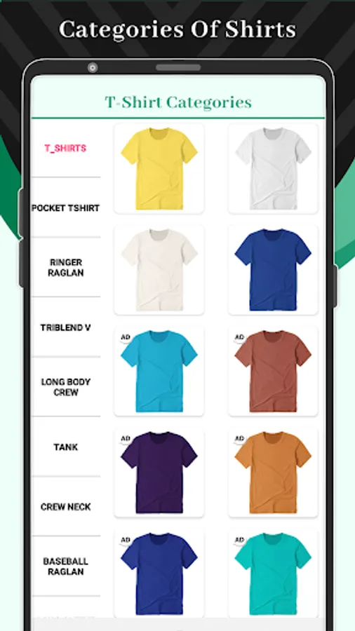 Categories contain in T_Shirt Design App: