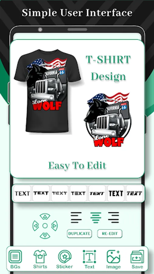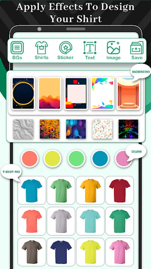 T Shirt design is very easy to use app with tons of Arts, Colors, T_Shirts & Textures.