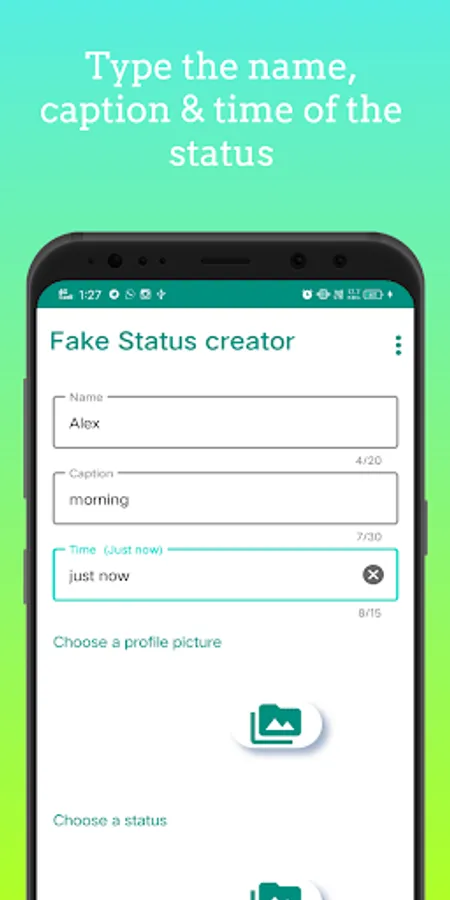 Fake Chat lets you create realistic WhatsApp status and share it with your friends and family.