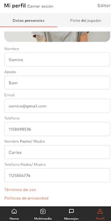 -Load your profile with photo, name, nickname, attach medical permits and others.