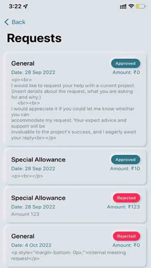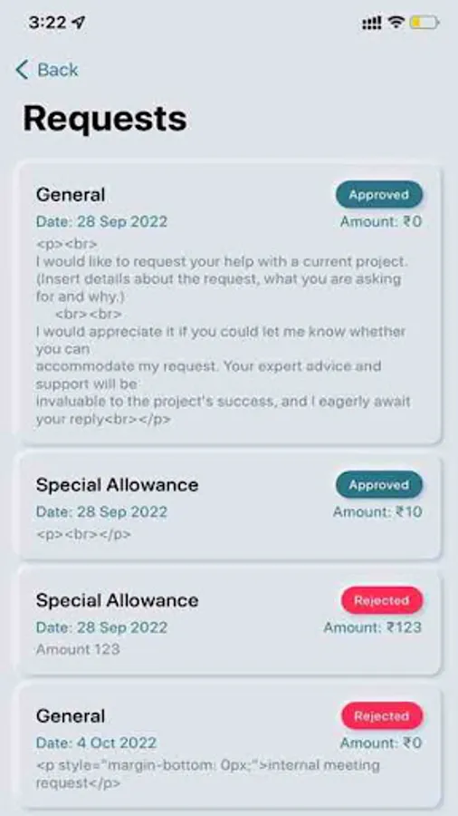 Requests - Create the Requests for Leave, Loan, Salary Advance, etc from anywhere using the app. View all your requests & get notified regarding the status of your requests
