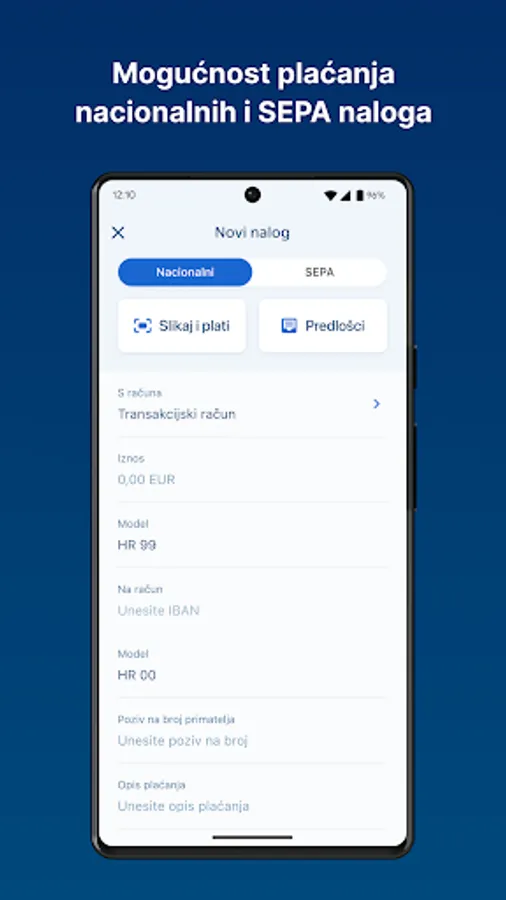 The unique/unified payment screen makes payments and fund transfers even easier. The PhotoPay feature, with which manually filling orders has become a thing of the past, is now at your fingertips, and the internal transfer option has been incorporated into a single screen, where you can make all types of national payments.