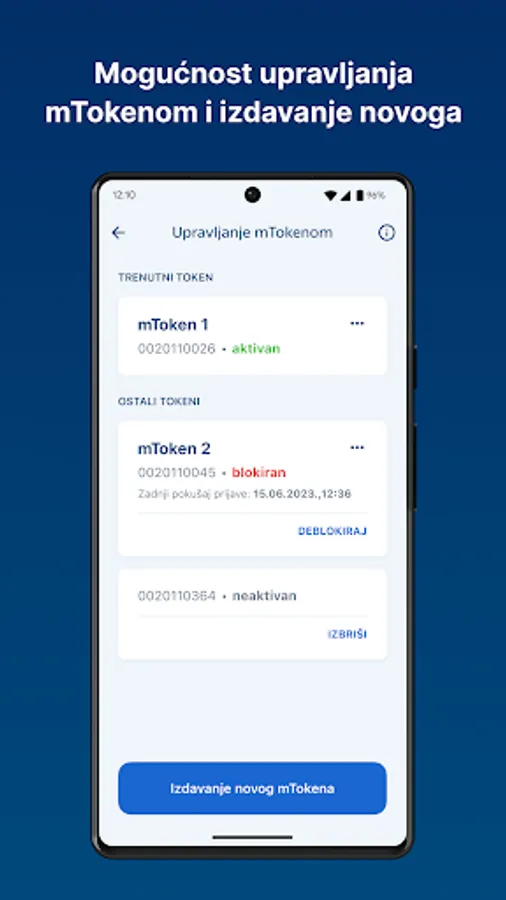 Erste Bank's secure e-banking services are accessible via mToken, a simple option within the mBanking app that lets you control all your financial transactions via a 4-digit mPIN. As a NetBanking or FonBanking user, you can download the free mBanking app and start using the mToken option.