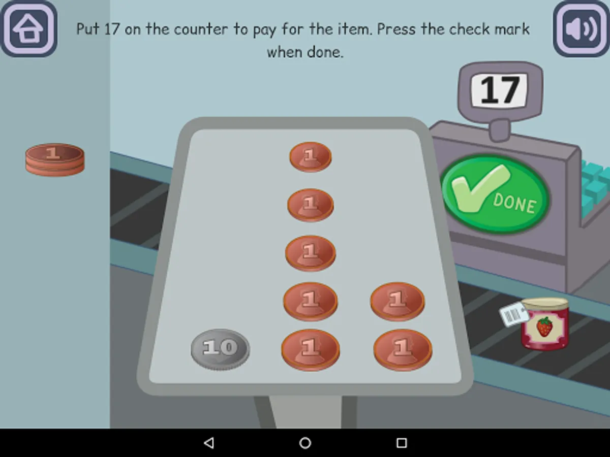 29. Money : Play a shopping game to buy toys using coins in 1 and 10 denomination.