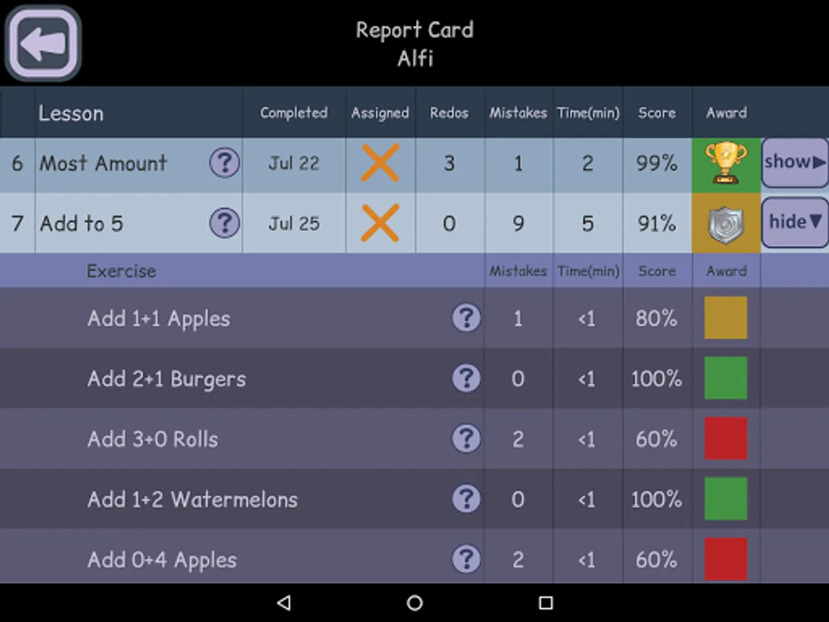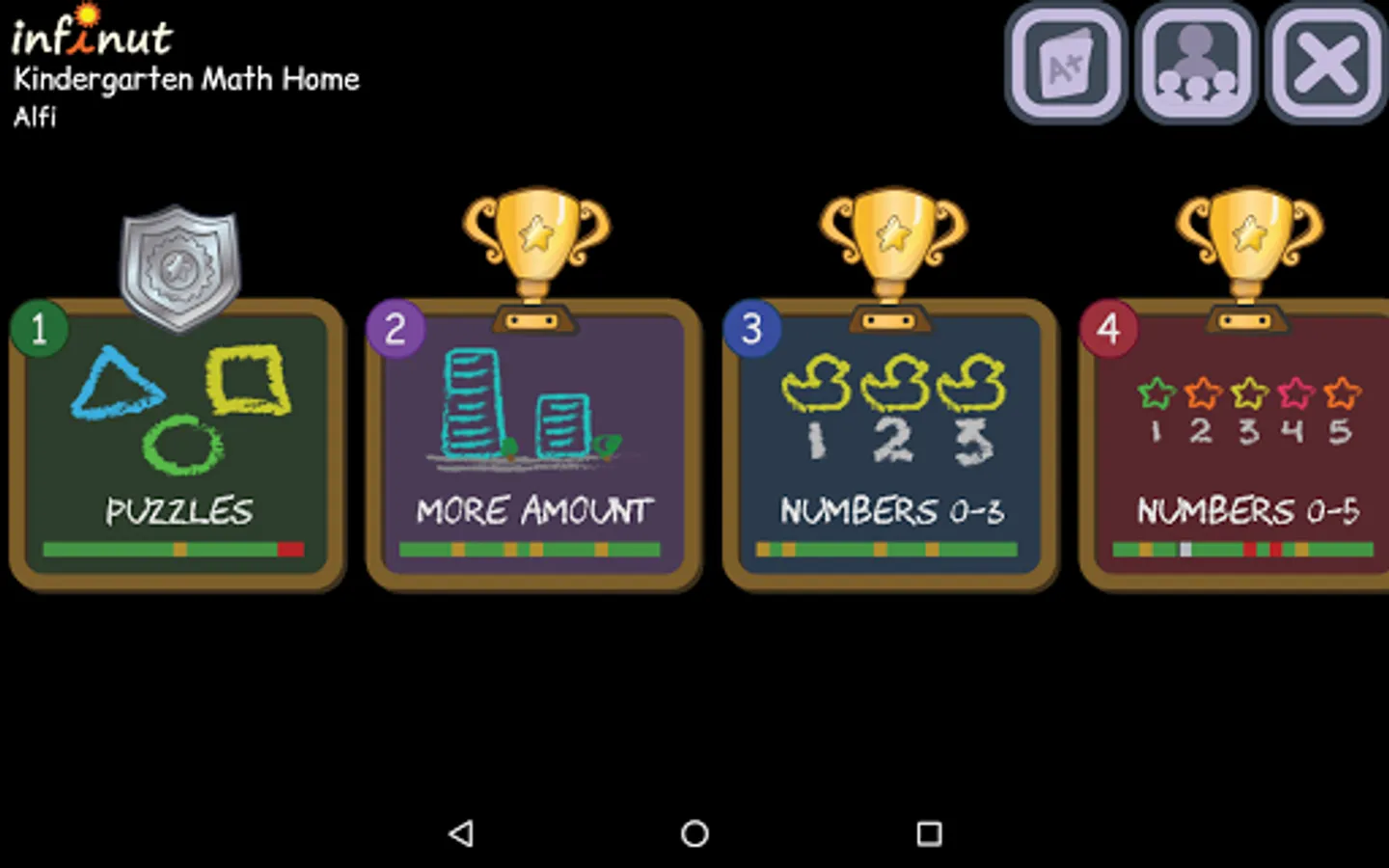 infinut Math lessons gradually increase in difficulty and are aligned to Common Core Math. Manipulatives are simulated on the touch-screen, to connect math to everyday things. Step-by-step audio and visual feedback is integrated into every game, to gently guide kids learning. Parents and teachers say: “Kids literally beg to play”. Our pilot research showed more than a year’s gain in learning (Cohen’s d:1.24, p<.001) in just 3 months.