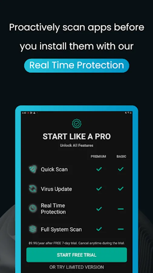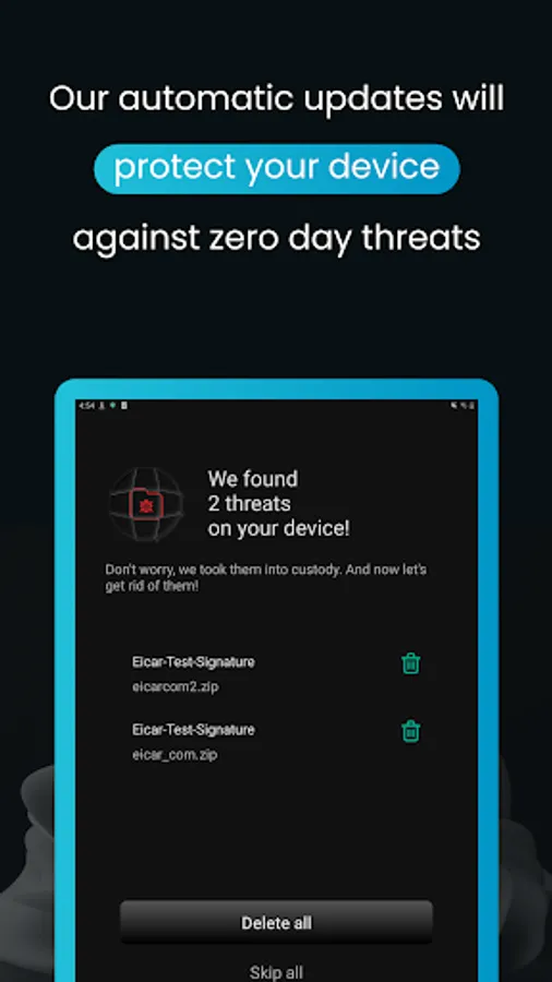 The patent-pending AI Scanner, will be able to track zero-day malware, and undiscovered threats, allowing you to keep your device clean and safe.