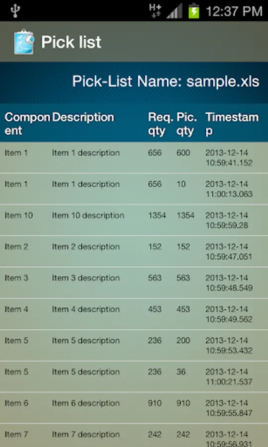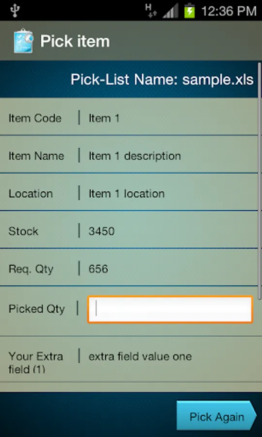NOTE: Only .xls files can be used to import pick-list information. The .xls file has to be in an expected format. The file has to be uploaded into the SD card of the mobile device.
