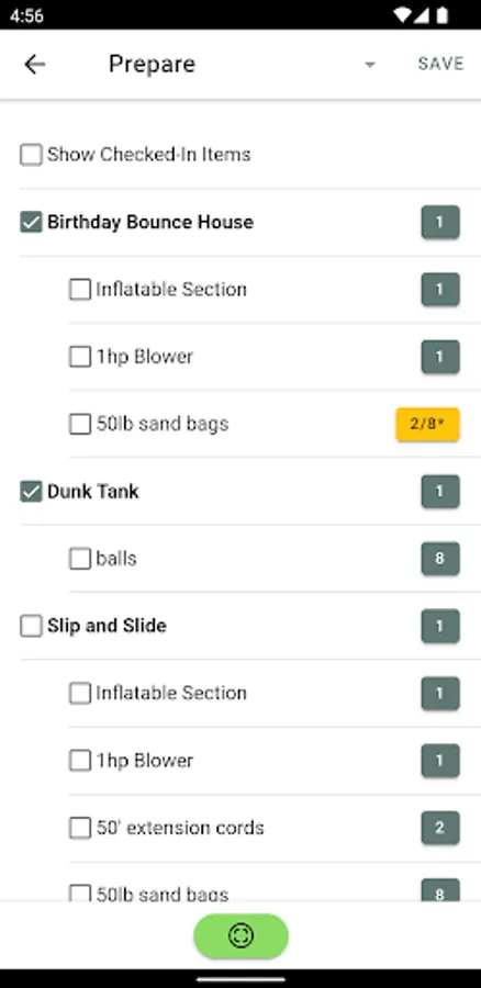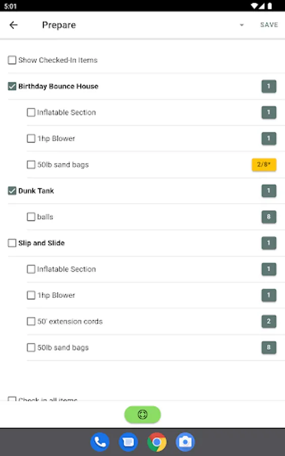 View and check in Packing List