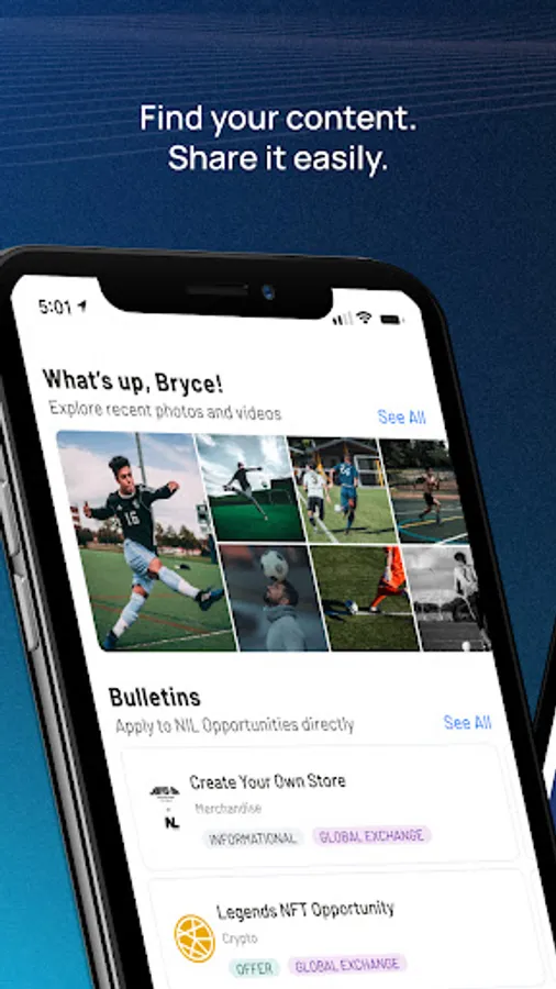 The INFLCR Athlete App allows an athlete to tell their story by publishing photos and videos on their social media accounts from their mobile device! They can view content that has been shared with them from their team’s INFLCR enterprise account, and then download this content to their photo library and/or share this content with their fans through their social media accounts.