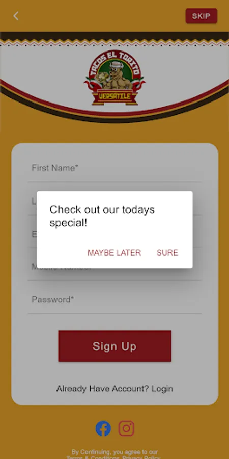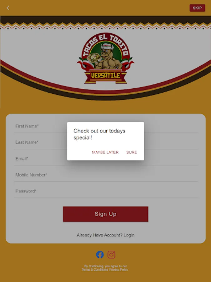 To begin to use our app you can create an account or continue as a guest to view “Today’s Specials”. When you create an account you are eligible for promotional giveaways. Choose your Pickup or Delivery method, view our full menu, add your meal to the cart, choose your payment method and submit your order.