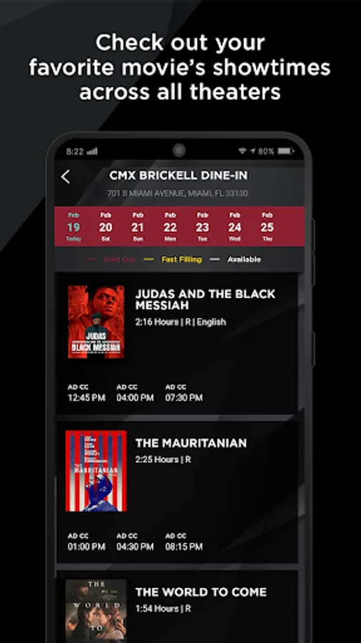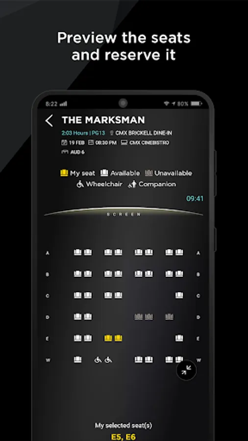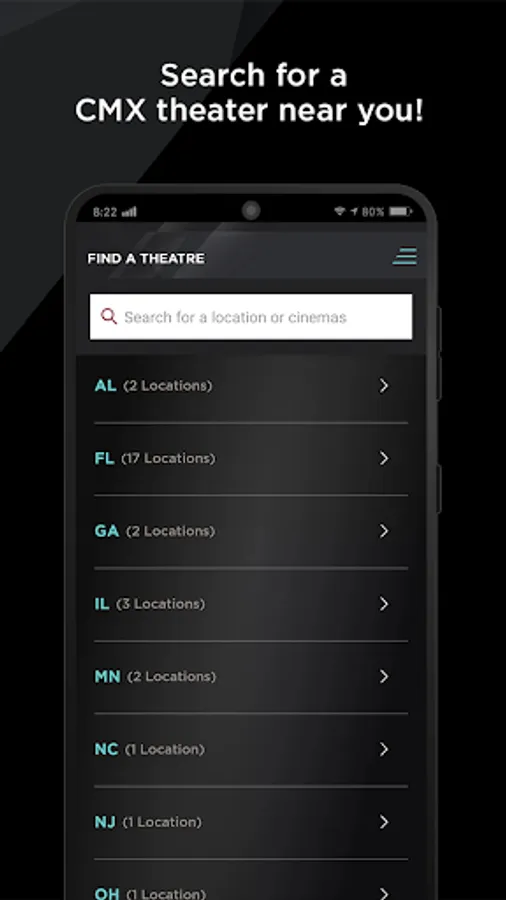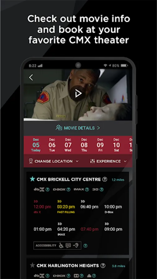 • Purchase cinema tickets on the app with your CMX Gift Cards or credit/debit cards