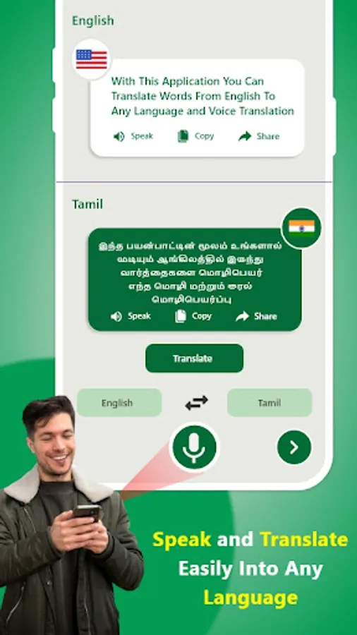 Use Native Keyboards for Tamil Translator and translate your Complete Message in English. Don’t hesitate to speak to anyone if you don’t know their language Simple Download our app Start Communicating.