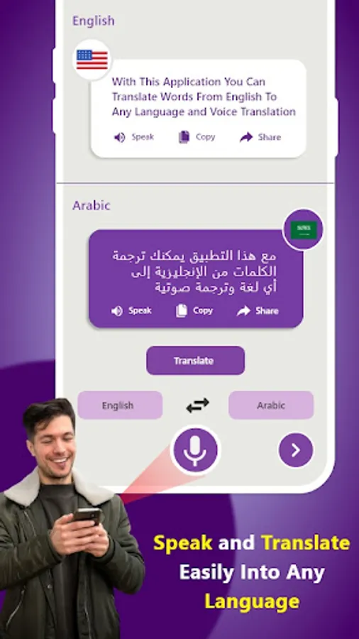 Use Native Keyboards for Arabic Translator and translate your Complete Message in English. Don’t hesitate to speak to anyone if you don’t know their language Simple Download our app Start Communicating.