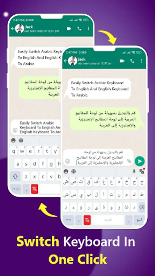 Arabic translator English to Arabic : Arabic translator Arabic to English is highly efficient and good in translating message you can definitely translate any phrase or word in a single click by using our app Arabic Keyboard - English to Arabic Keypad Typing. Communication is the biggest source now a days to enhance your network on social media and we found people from different countries and who cannot speak our native language and we cannot speak their language so keep a strong bridge in communication we have designed a perfect and reliable app English to Arabic translator keyboard or English to Arabic translator keypad that can help you in English to Arabic typing and Arabic to English typing.