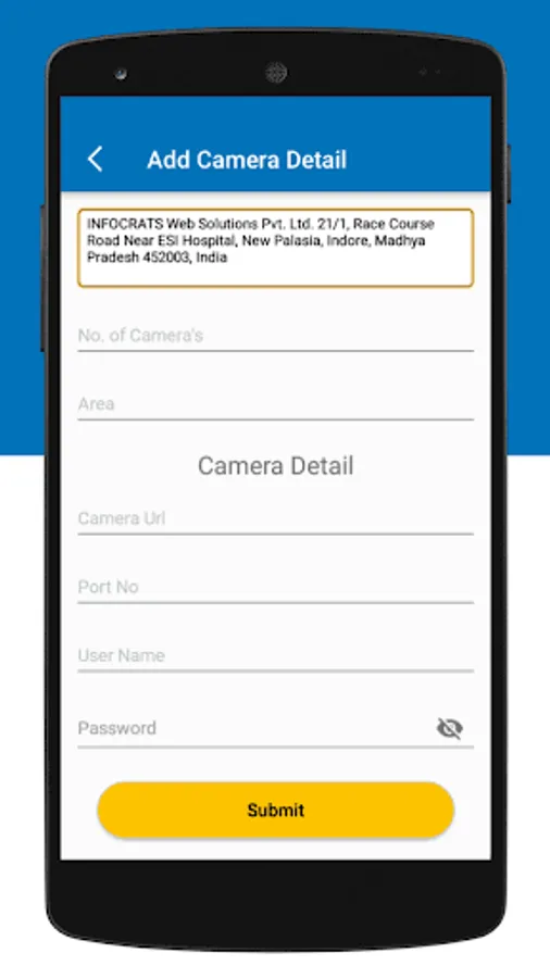 The application allows users to register themselves with an easy login process. Further, they can elaborate on their profile. After getting their location, the app would ask for their camera details. In this section, they can fill details like the number of cameras, area, camera URL, port number, user name, and password. Feed details are optional and overall this initiative is also an optional effort to improve city surveillance and crime detection using public participation.