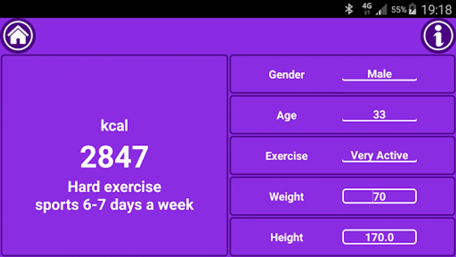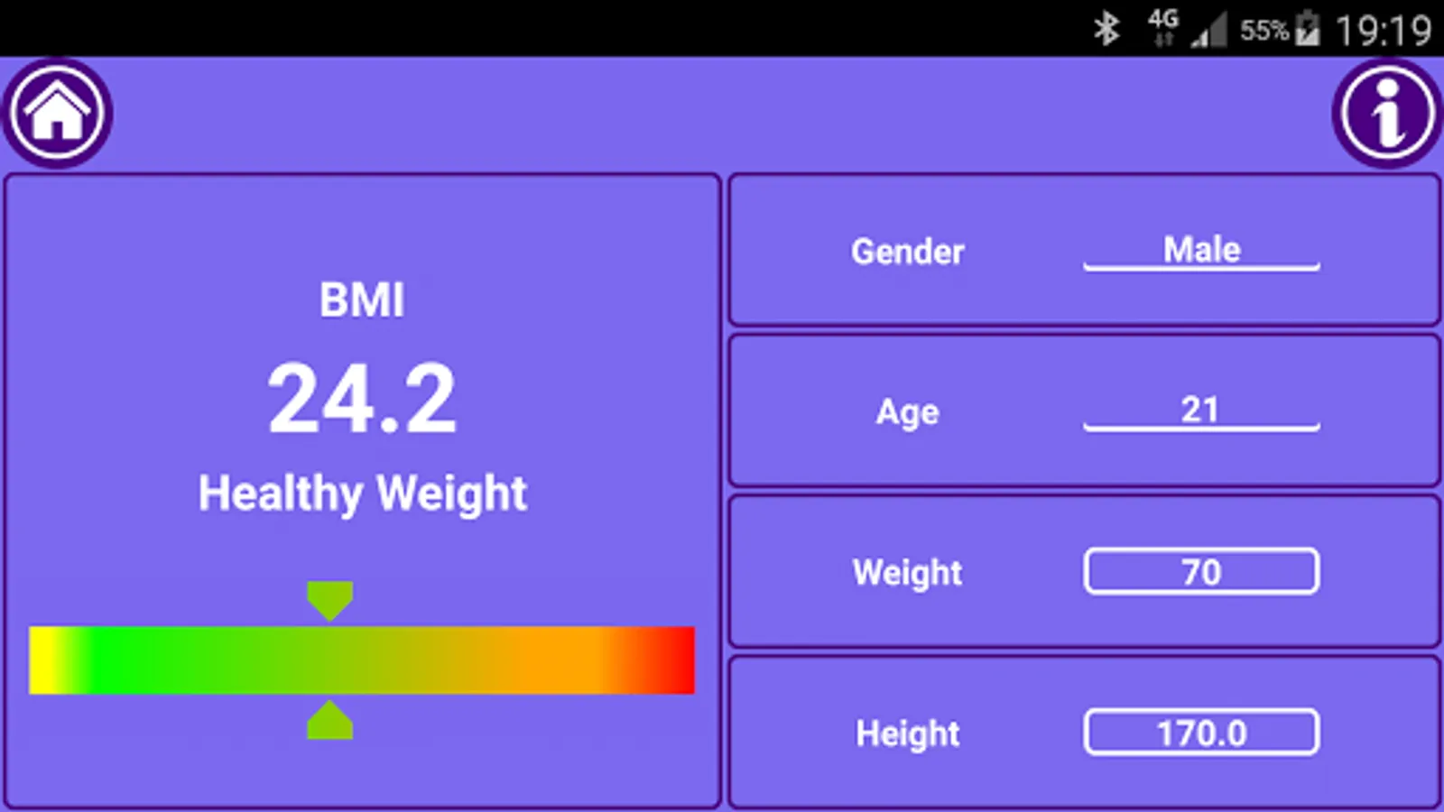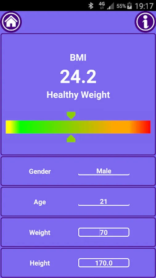 ● Fit Mark Fitness Calculator Remembers the entered values. So you don’t have to re-enter your age and height every time you open the app.