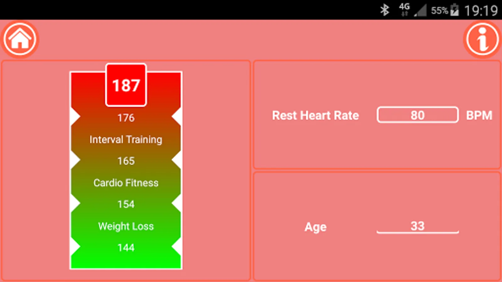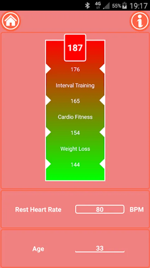 ● Golden Hart Rate - Heart Rate calculator will assists you to find the desired heart rate range for your workout using Karvonen formula for your workout such as: weight loss, cardio fitness and interval training.