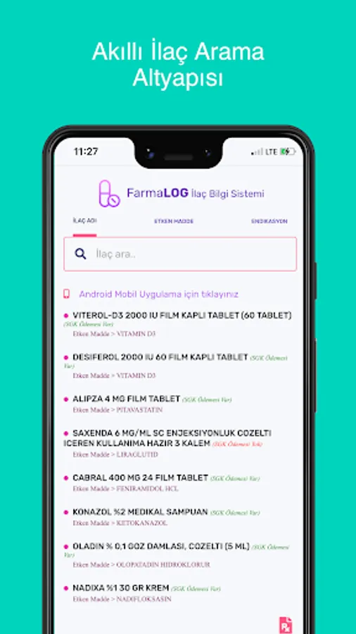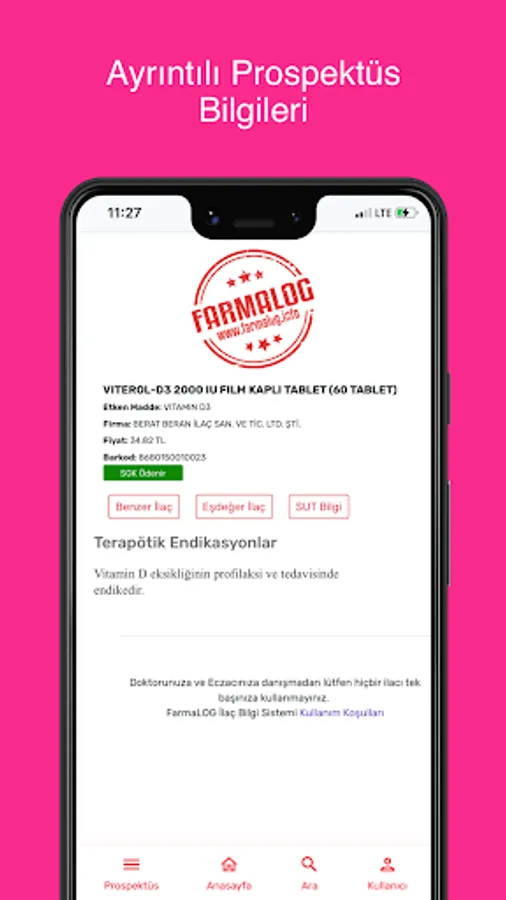 Our up-to-date application that includes drug package insert and SUT information for Health Professionals. You can access all up-to-date information on both our website and FarmaLOG Pharmaceutical Pro Android.