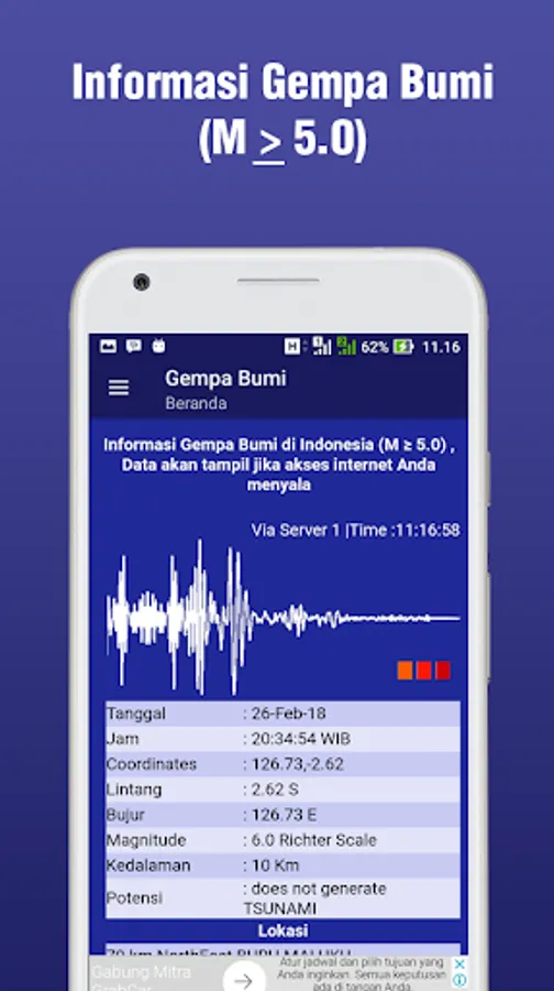 Applications are in the allotment for all communities as an alternative to obtain data information earthquakes occurred in the region indonesia.Dengan their application is expected can increase public awareness and disseminate information about the dangers of earthquakes quickly and accurately.