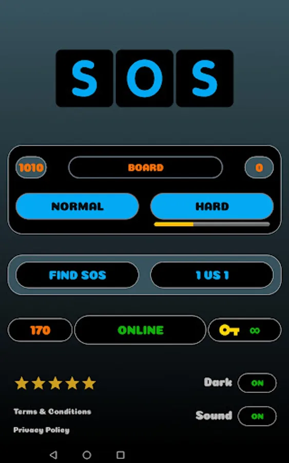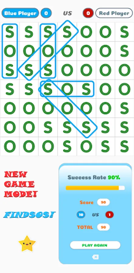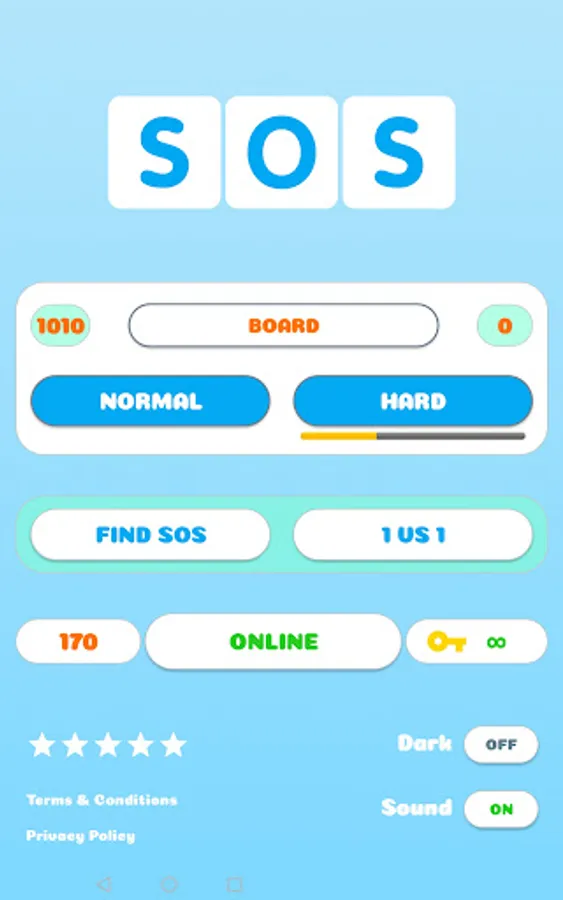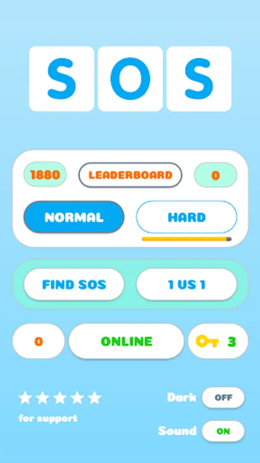 You can play SOS, which is an old and classic game, against the device or with your friend from the same device in a simple and eye-pleasing design.