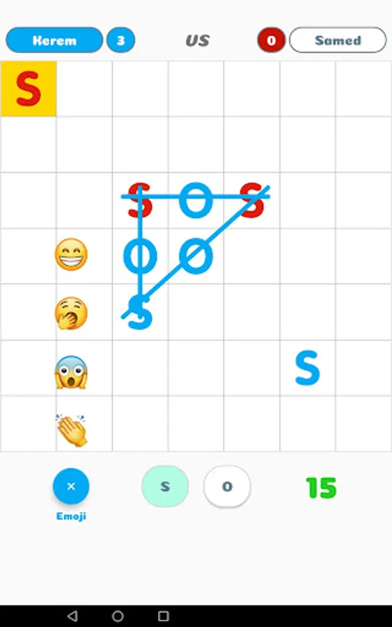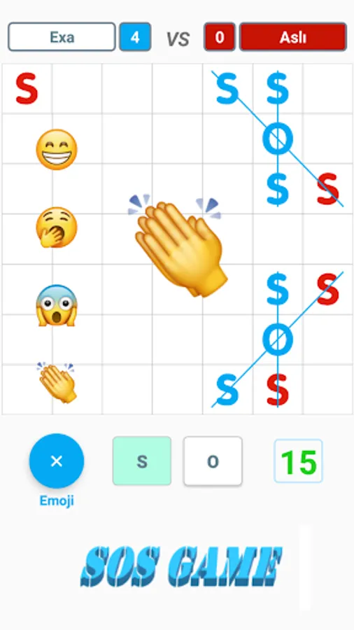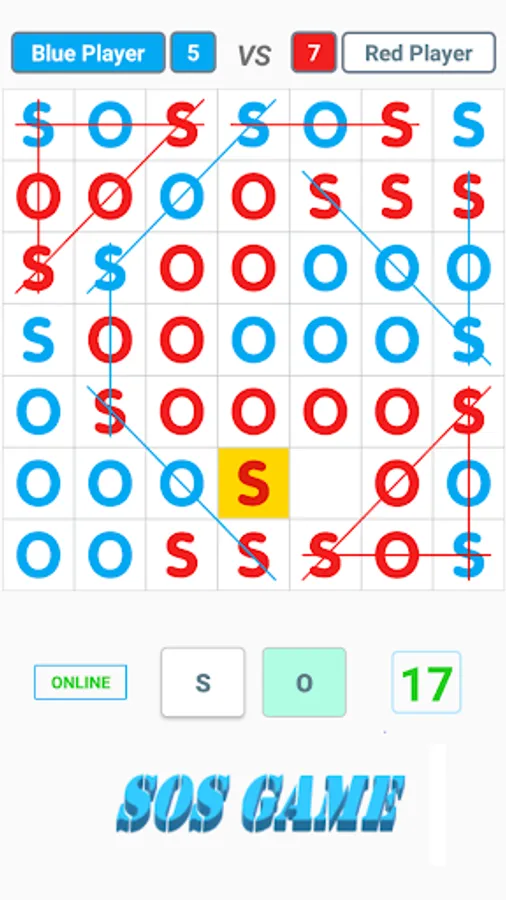 The aim of the game is trying to write SOS with the letters "S" and "O" that can be used on both sides; who makes the most SOS wins the game. SOS can be made from top to bottom, left to right or diagonally. If you make SOS, it will be your turn again. Your strategy here is not to give your opponent the opportunity to make SOS while you are trying to make SOS.