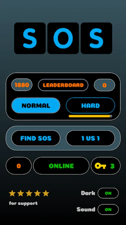- The second is the HARD difficulty level. Playing in HARD level requires a very deep concentration to prevent your opponent to make SOS. Artificial Intelligence is a very strong opponent at this level.