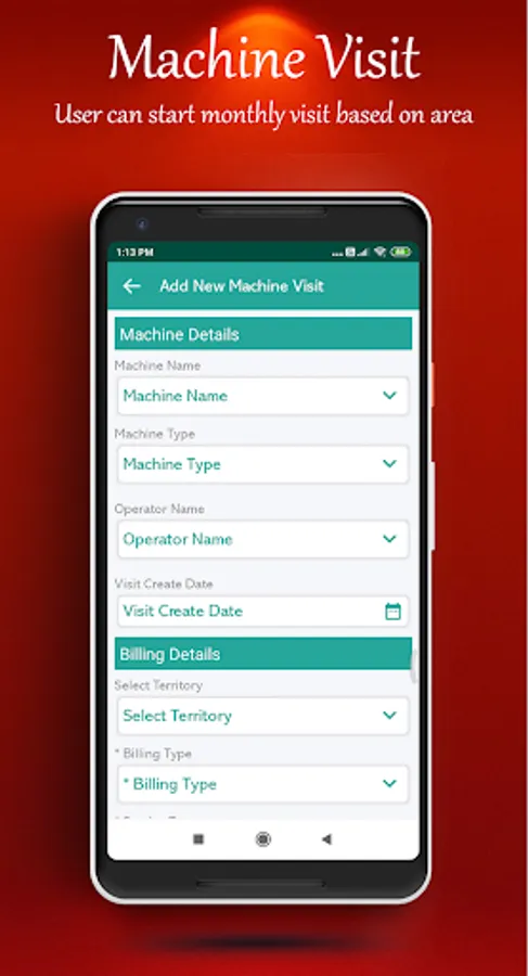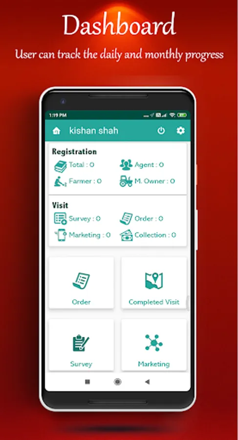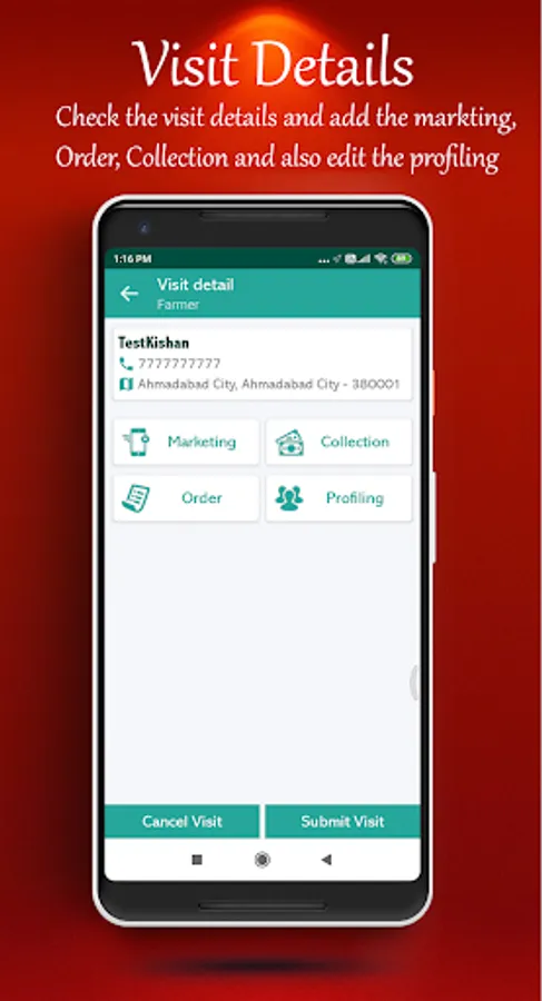 This app is for internal and external employee usage and is deployed onto the Field Executive Mobile phone to enable capture the desired information remotely and to be submitted in real-time for further processing. This application is for real-time field force management which gives the following features: