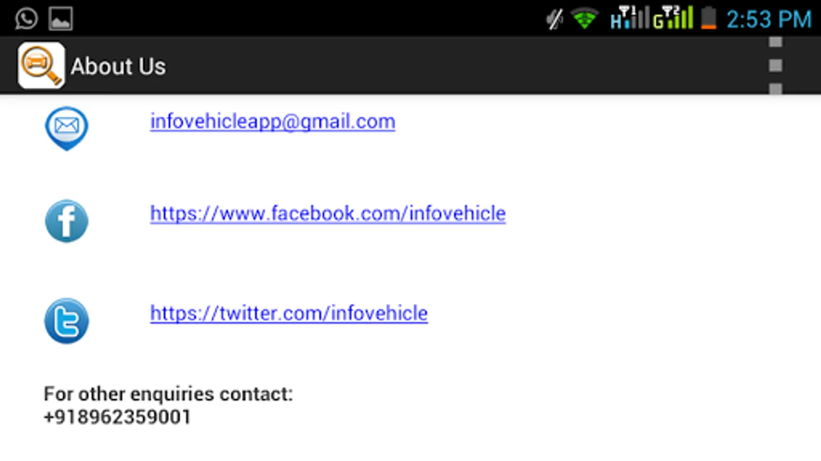 Info vehicle will help you to search vehicle registration details, Vehicle Number Plate details, name of the owner ,fathers name, address, purchase date, type of vehicle, color of the vehicle, brand name, fuel type, registration authority, year of manufacture, class of vehicle, fitness, tax, insurance, RTO Registration details etc