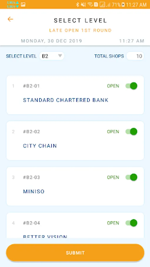 - The retail outlets that have not open their retail outlets in the shopping centre for business by 10AN everyday.