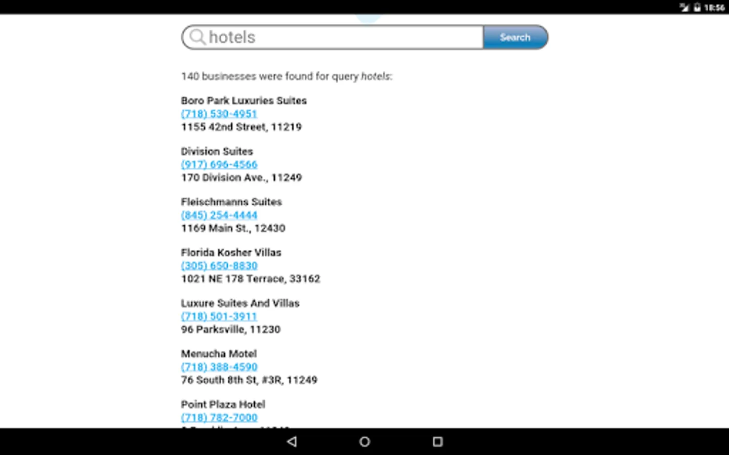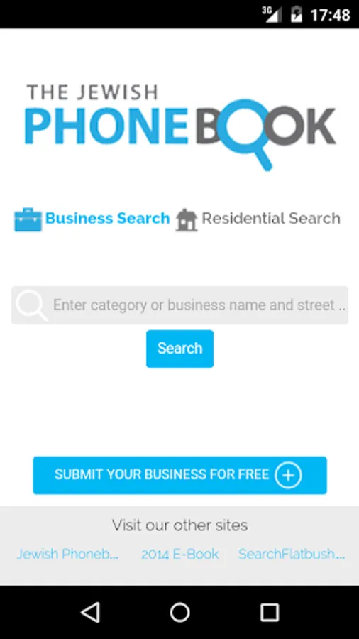 The Jewish Phone book App enables users to conveniently locate any Jewish business in Brooklyn NY. Users can also search for residential Phone numbers in the Williamsburg and Borough Park section of Brooklyn.