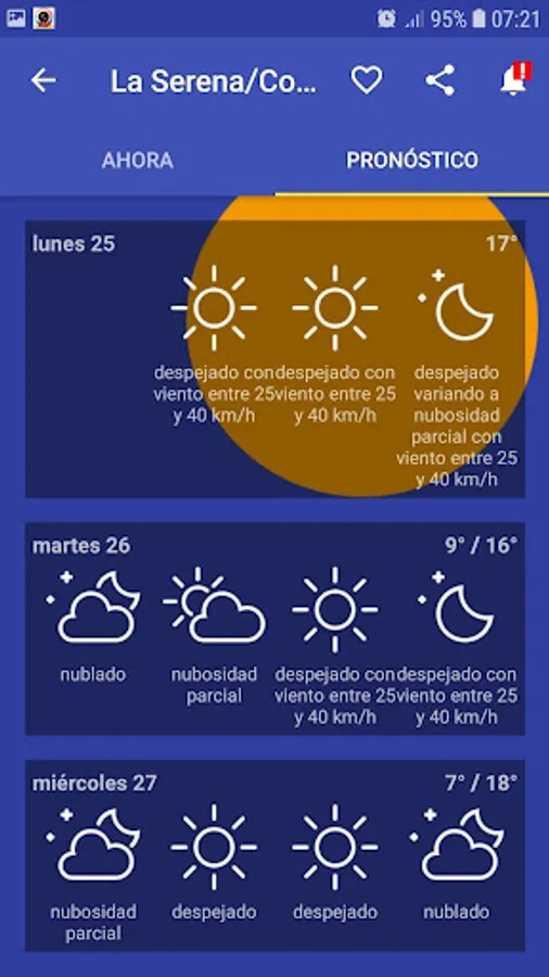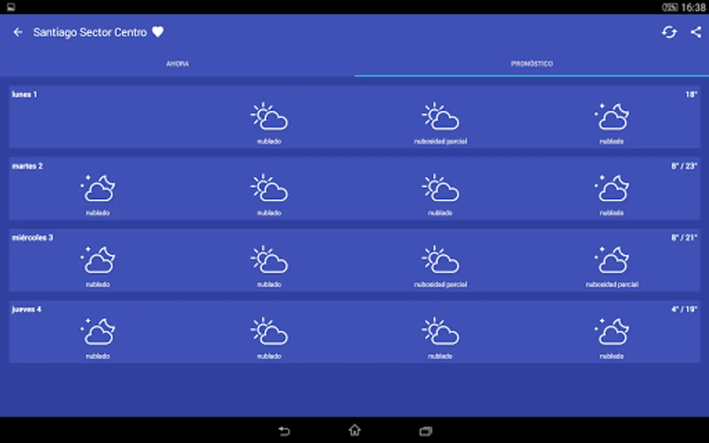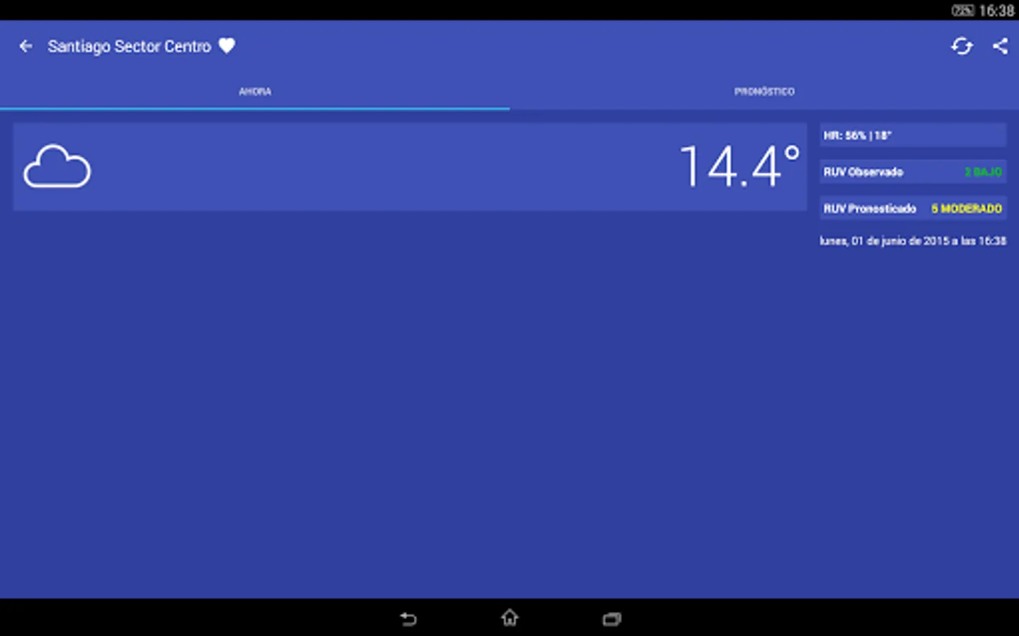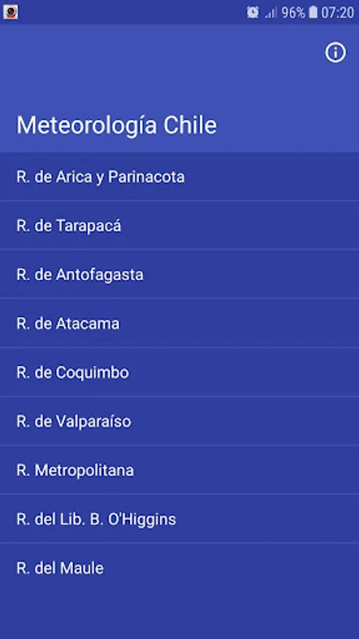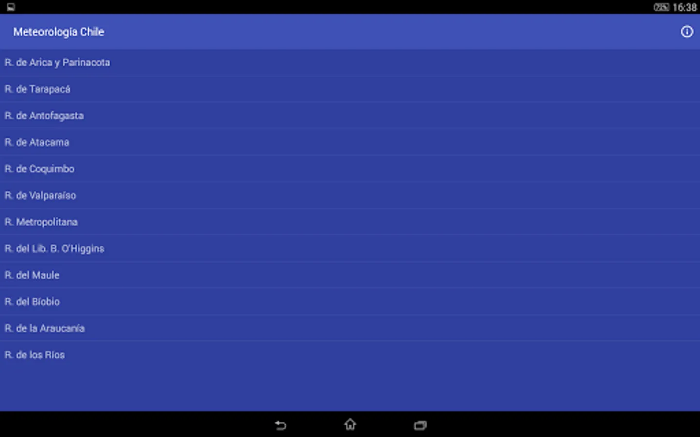 Application that shows the time, UV and forecast for different cities of Chile. The information is obtained from the website of the Directorate of Meteorology of Chile www.meteochile.cl