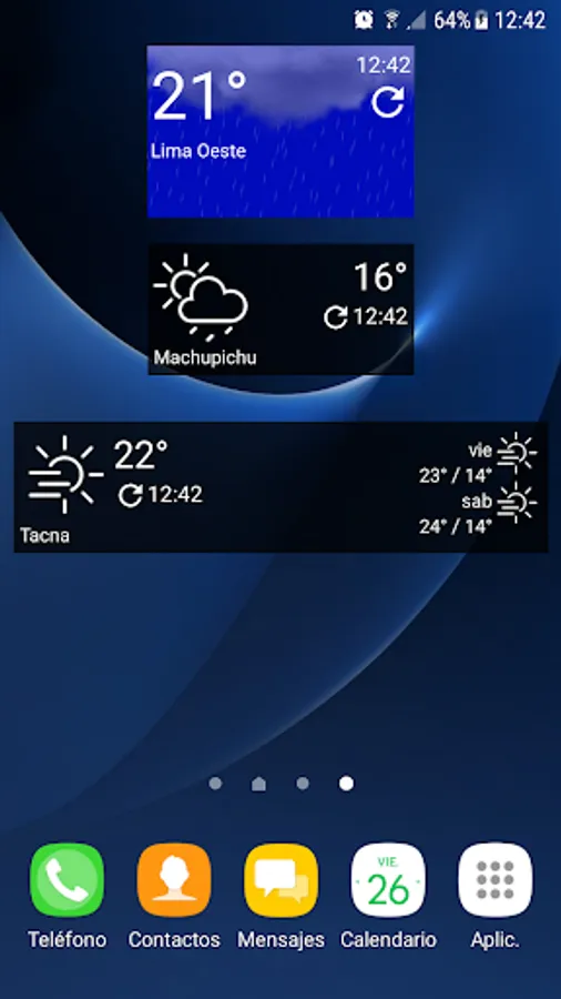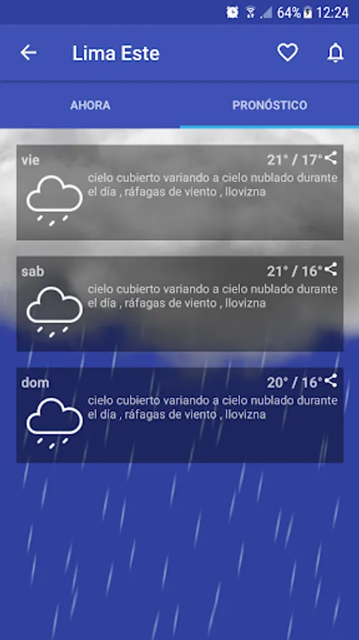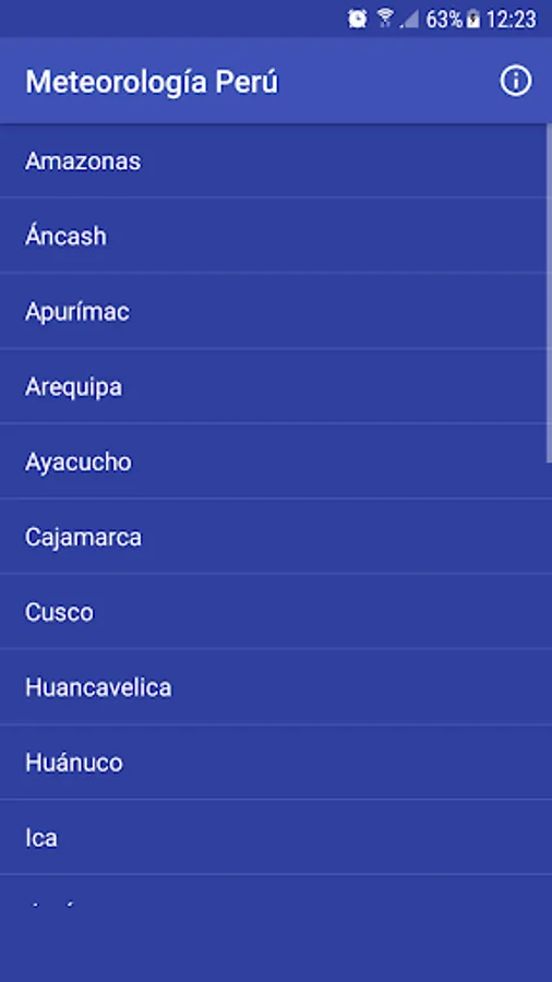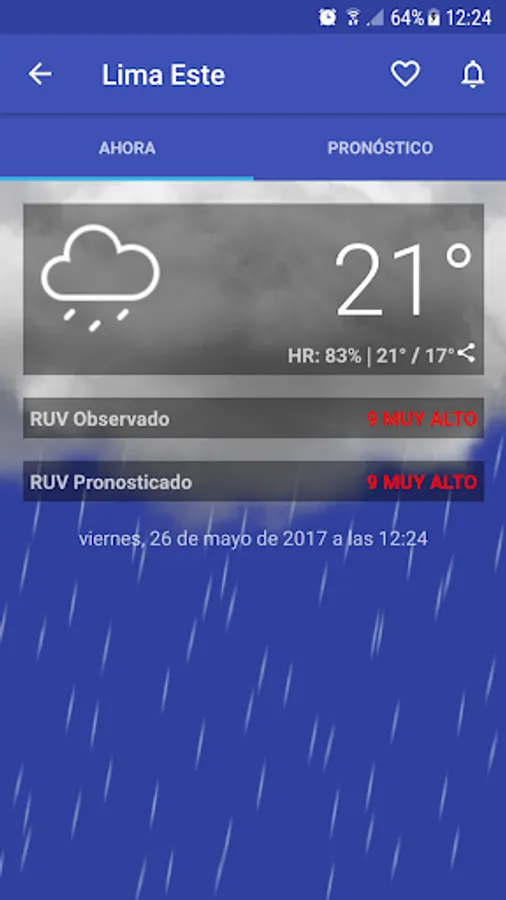 Application has time, UV radiation and forecast for different cities in Peru. The information is obtained from the website of the National Service of Meteorology and Hydrology of Peru www.senamhi.gob.pe