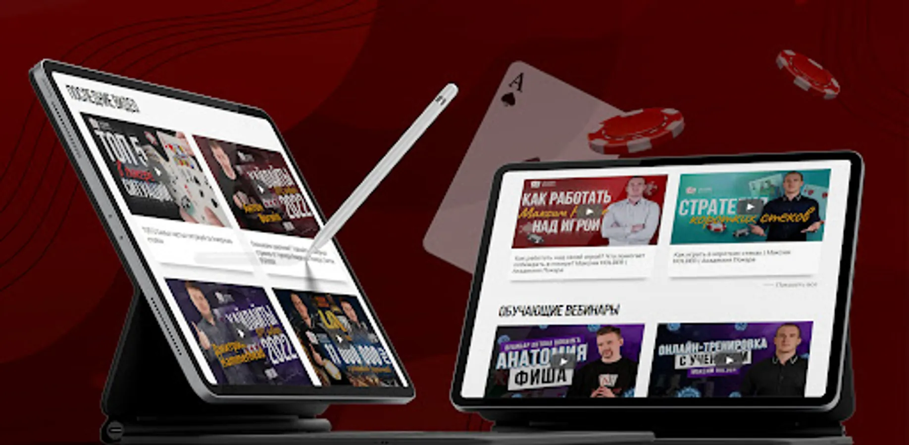 В приложении можно ознакомиться с курсами по обучению покеру — кэш-игре, турнирам или же попробовать обучение с нуля, где тренер начнет урок с азов игры. Пользователи могут ознакомиться с достижениями тренеров и их бывших учеников и убедиться в их компетентности на регулярных стримах.