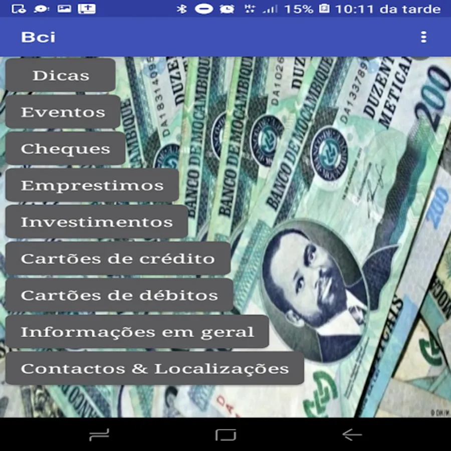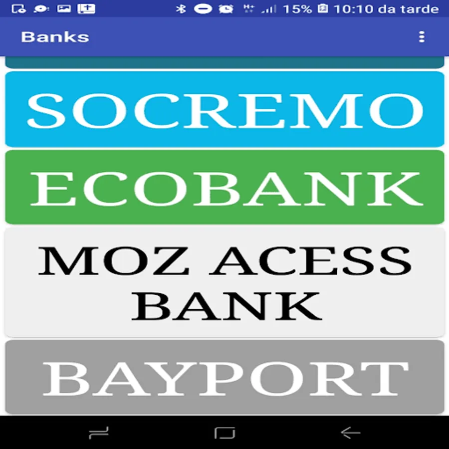 Application intended and dedicated to users of banks in Mozambique, providing a list of banks and micro-banks and all relevant information.
