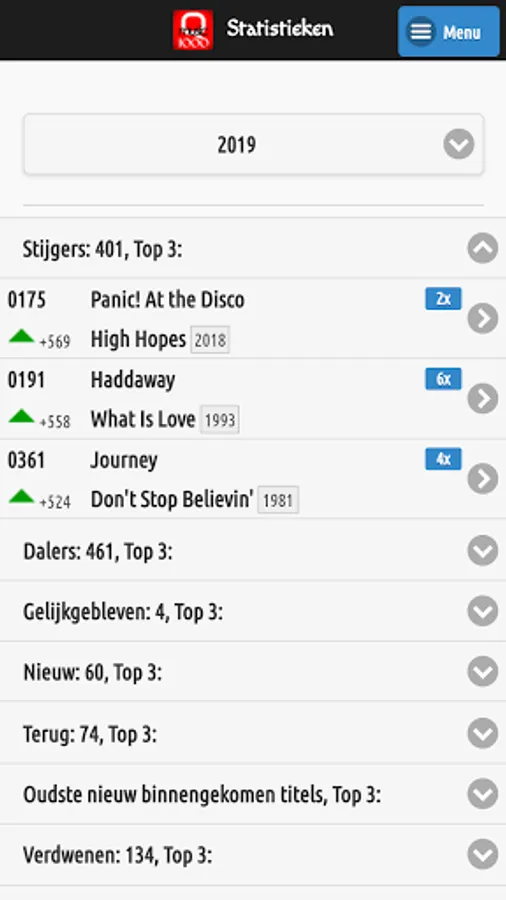 Browse all editions of the list, view various overviews, statistics, graphs and images and take advantage of a plethora of options (audio clips, video and lyrics), set your favorites for quick access and much more.