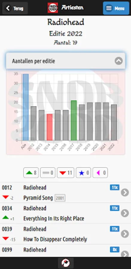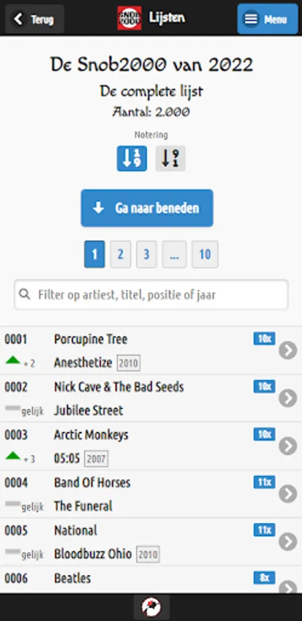 View all editions of the annual Snob2000. Many overviews, details and graphs. View the list of losers, risers, repeaters, the new titles or the disappeared titles per edition. And much more!