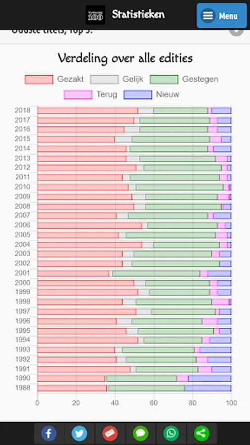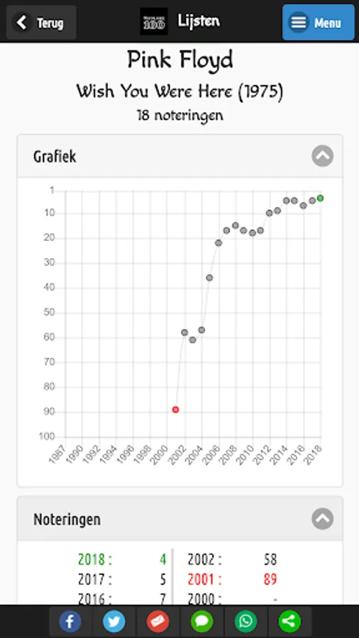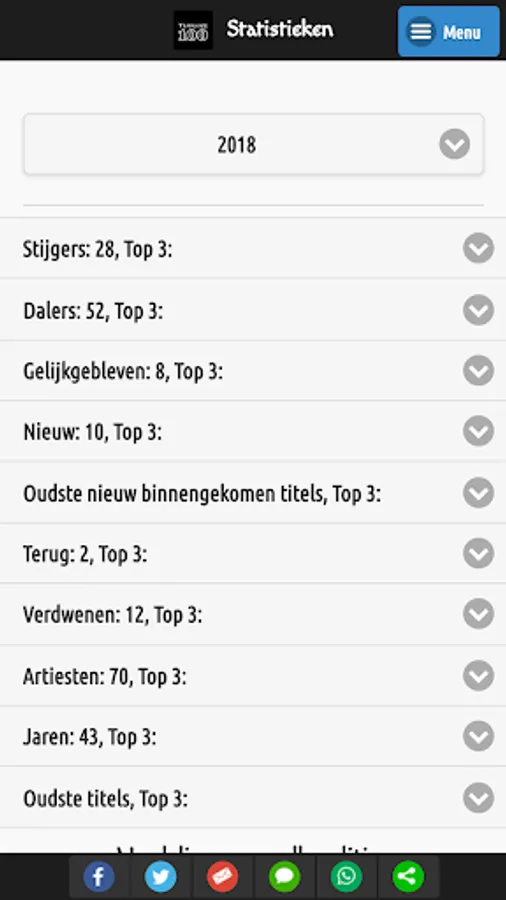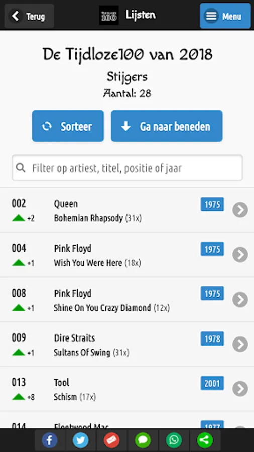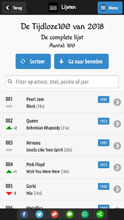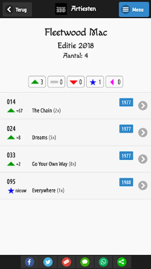 View all lists of this - not only in Belgium, but also in the Netherlands - popular top 100 list since 1987.
