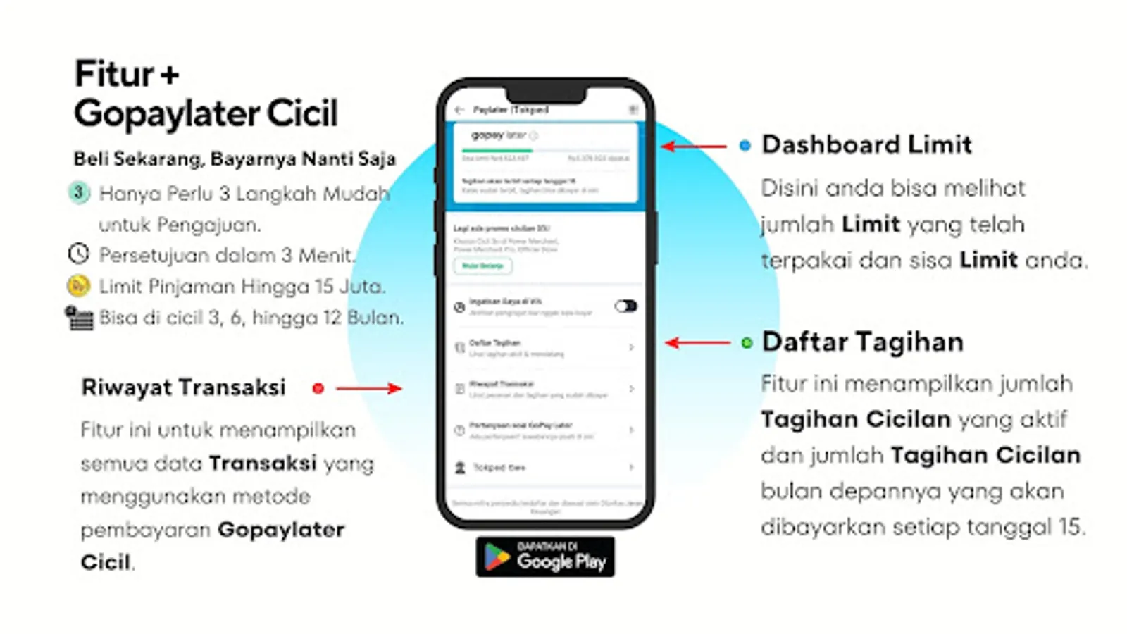 Gopaylater Cicil is a digital loan feature from gopay and can be used to shop at Tokopedia, gopaylater cicil is now in the hands of PT Multifinance Anak Bangsa (MAB) which has been licensed and supervised by the Financial Services Authority (OJK) so it is very safe and reliable if you apply for a loan at gopaylater. Now the limit provided by gopaylater is in installments of a maximum of IDR 20,000,000 (20 million) with easy loan applications, low interest of only 2.6% / month, and long installment times ranging from 3, 6 to 12 months.