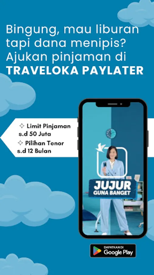 Traveloka PayLater is a cash and non-cash loan feature to support your holiday needs, with easy application, low interest, long installment times of up to 24 months, and a large limit of up to Rp. 60,000,000, which is licensed and supervised by the OJK (OJK Finance) so it's very safe to apply for a loan at Traveloka Paylater.