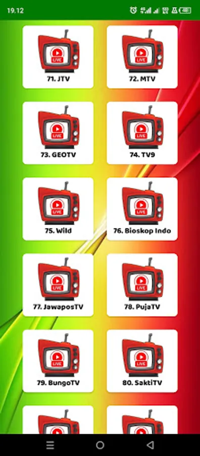 All live broadcasts will be played automatically according to categories such as Soap Opera Channels, News Channels, Sports Channels, National Channels, Regional Channels, Overseas Channels, Children's Channels, Entertainment Channels, Bollywood, Korean Dramas, Cartoons and many other channels. .