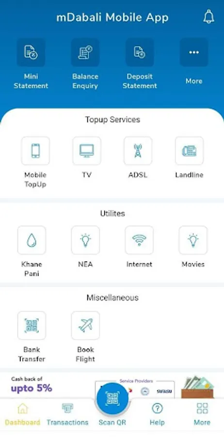 mDabali Mobile App is an online payment mobile application developed for utility payment such as bill payment, recharge or top up of service providers like Nepal Telecom, Ncell and Dish Home.
