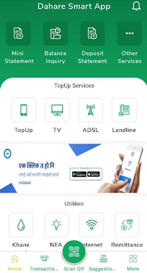Dahare Smart App is an online payment mobile application developed for utility payment such as bill payment, recharge or top up of service providers like Nepal Telecom, Ncell and Dish Home along with mobile banking features.