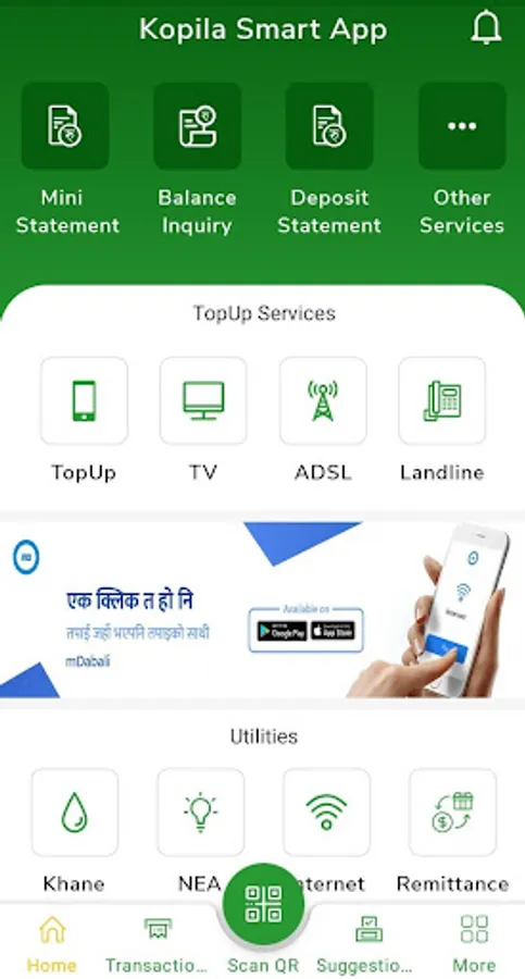 Kopila Smart App is an online payment mobile application developed for utility payment such as bill payment, recharge or top up of service providers like Nepal Telecom, Ncell and Dish Home along with mobile banking features.
