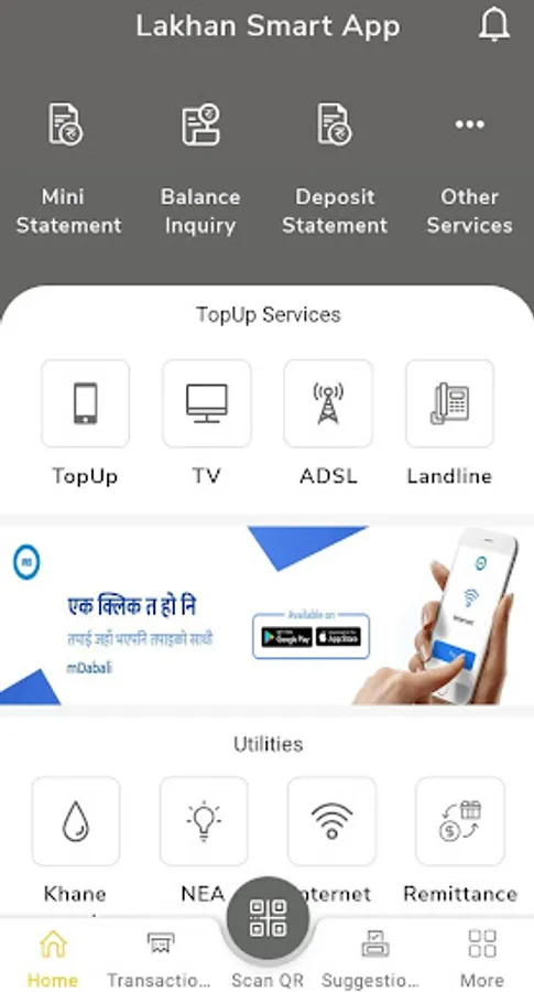 Lakhan Thapa Smart App is an online payment mobile application developed for utility payment such as bill payment, recharge or top up of service providers like Nepal Telecom, Ncell and Dish Home along with mobile banking features.