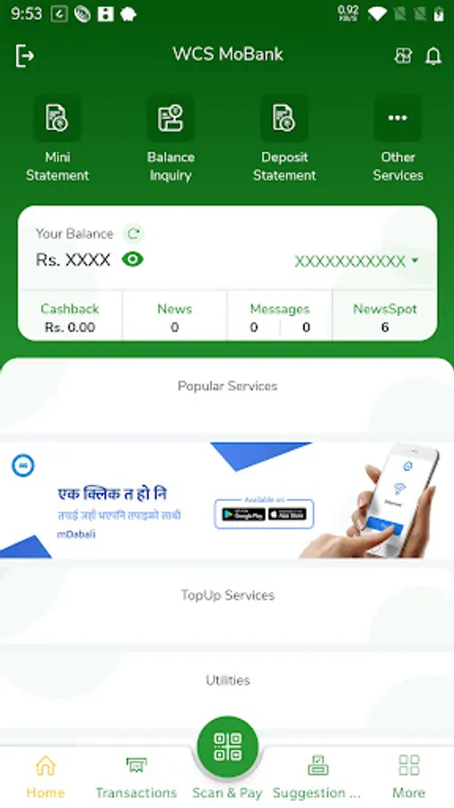 WCS MoBank is an online payment mobile application developed for utility payment such as bill payment, recharge or top up of service providers like Nepal Telecom, Ncell and Dish Home along with mobile banking features.a